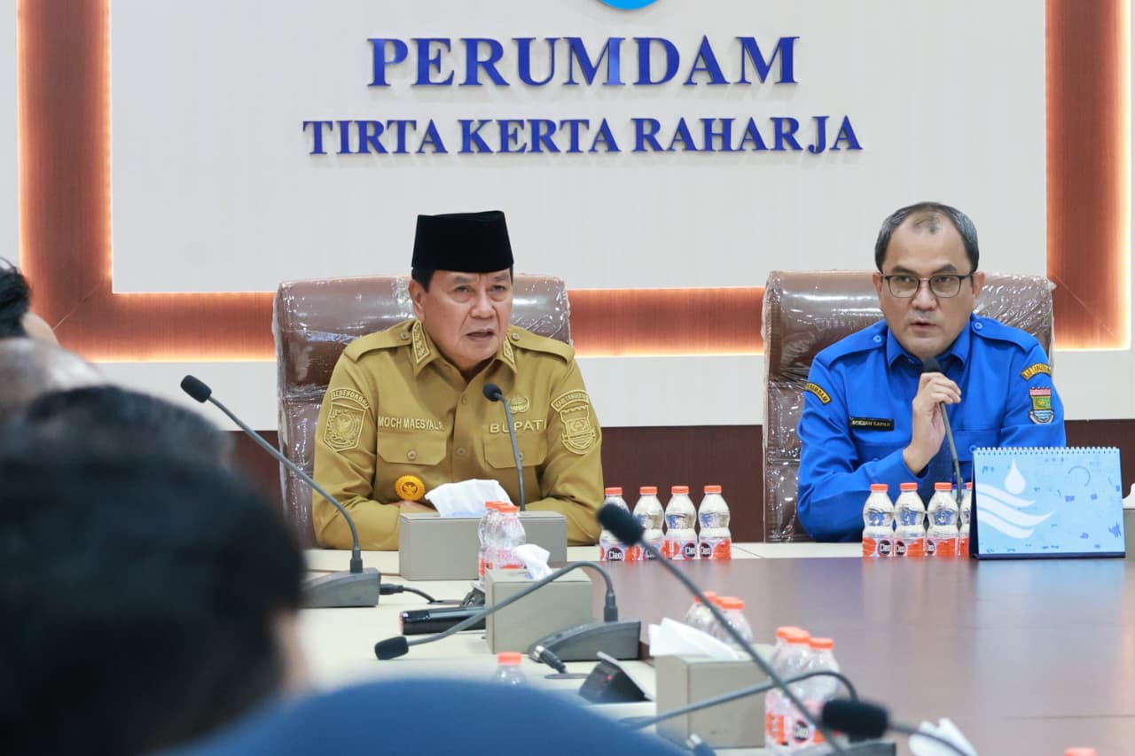 Tangerang, sorotbanten.com | Bupati Tangerang, Moch. Maesyal Rasyid meminta seluruh jajaran Perumdam Tirta Kerja Raharja (TKR) terus berinovasi dan melakukan terobosan-terobosan untuk meningkatkan layanan dan kinerja. Hal tersebut diungkapkan Bupati Maesyal Rasyid saat melakukan kunjungan ke Kantor Perumdam TKR, Senin (12/01/2026).