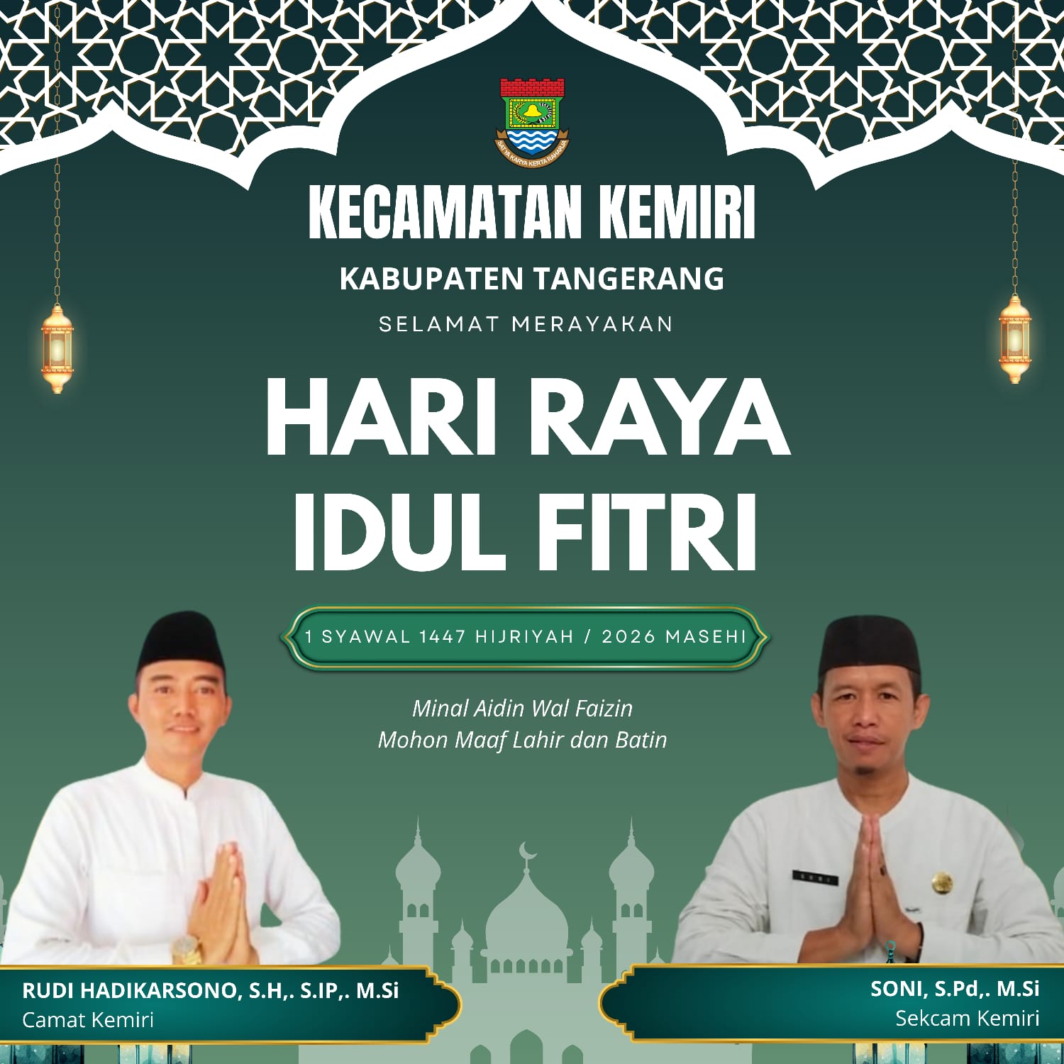 Tangerang, sorotbanten.com – Pemerintah Kecamatan Kemiri menyampaikan ucapan Selamat Hari Raya Idul Fitri 1 Syawal 1447 Hijriah kepada seluruh masyarakat yang merayakan. Momentum hari kemenangan ini diharapkan menjadi ajang untuk mempererat tali silaturahmi serta memperkuat persatuan dan kebersamaan di tengah masyarakat.