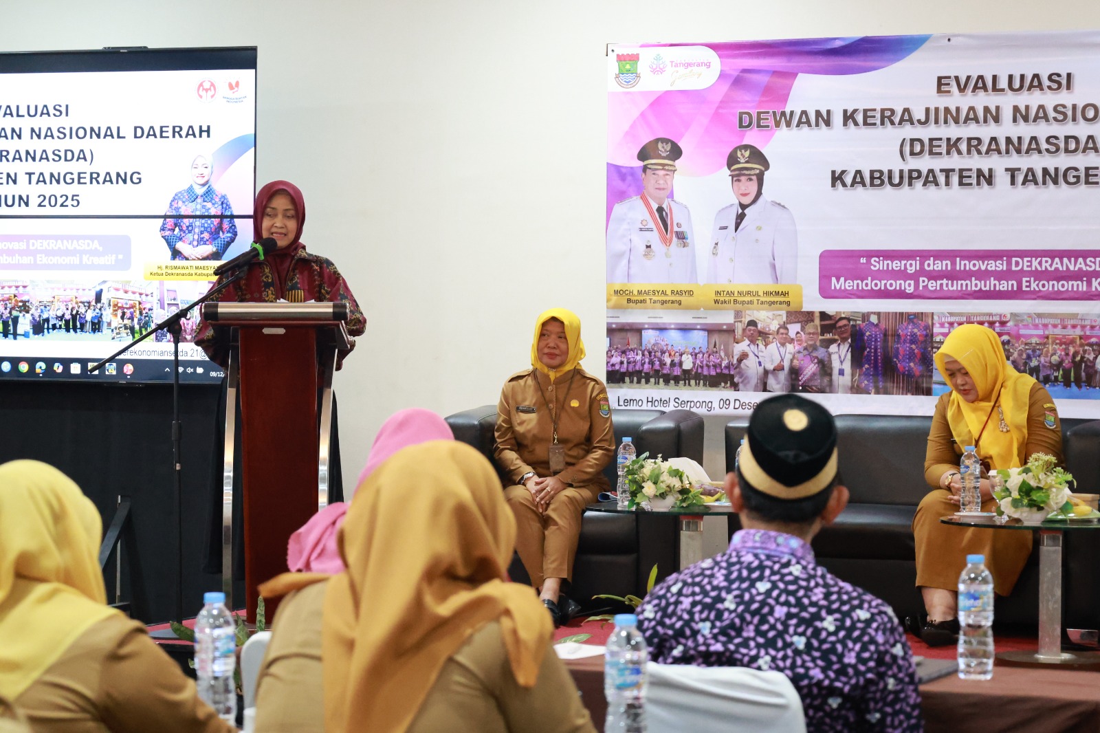 Ketua Dekranasda Kabupaten Tangerang, Rismawati Maesyal Rasyid mengatakan bahwa rapat evaluasi tersebut dapat menjadi tolak ukur sejauh mana kinerja dan sepak terjang Dekranasda Kab. Tangerang dalam memajukan usaha mikro perajin yang ada di wilayah Kabupaten Tangerang.