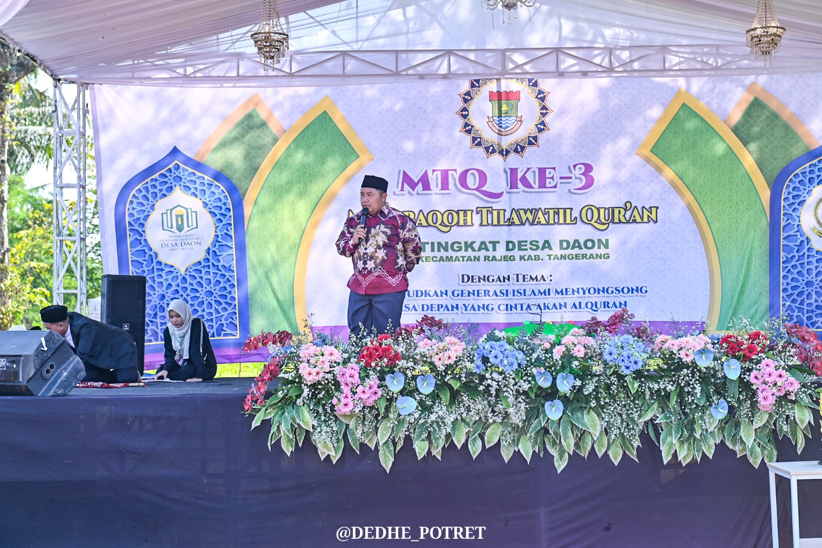 Dalam sambutannya, Kepala Desa Daon, H. Johani, menyampaikan rasa syukur dan bangga atas terselenggaranya kegiatan yang penuh makna tersebut. Ia menegaskan bahwa MTQ bukan hanya ajang lomba keagamaan, melainkan langkah nyata untuk membentuk generasi Qur’ani yang berkarakter dan berakhlak.
