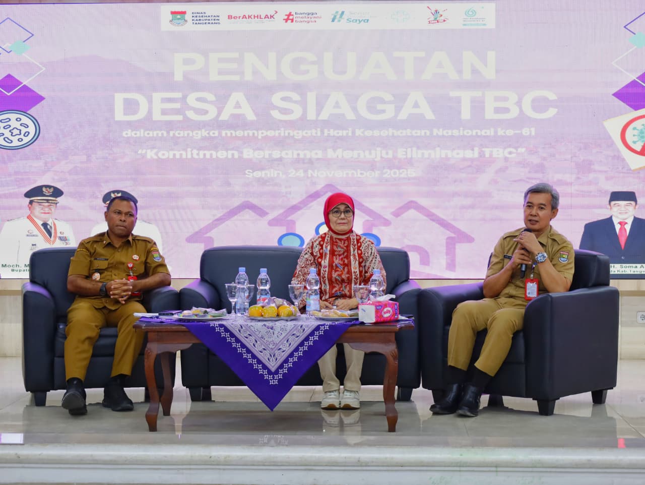 Tangerang, sorotbanten.com | Bupati Tangerang Moch. Maesyal Rasyid menegaskan bahwa penanganan Tuberkulosis (TBC) merupakan tanggung jawab bersama seluruh pihak. Hal tersebut disampaikan saat membuka kegiatan Penguatan Desa Siaga TBC yang digelar dalam rangka memperingati Hari Kesehatan Nasional ke-61 di Gedung Serba Guna (GSG) Puspemkab Tangerang, Senin (24/11/2025).