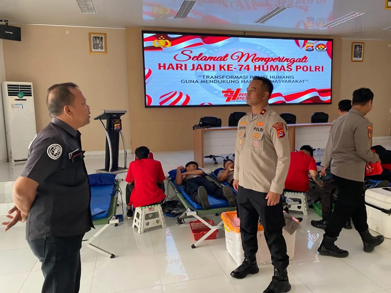 “Dalam momentum HUT Humas Polri ke-74 ini, kami ingin berbagi dan memberikan manfaat langsung bagi sesama melalui kegiatan donor darah. Setetes darah yang kita sumbangkan hari ini bisa menyelamatkan nyawa orang lain,” ujar Iptu Aminarto.