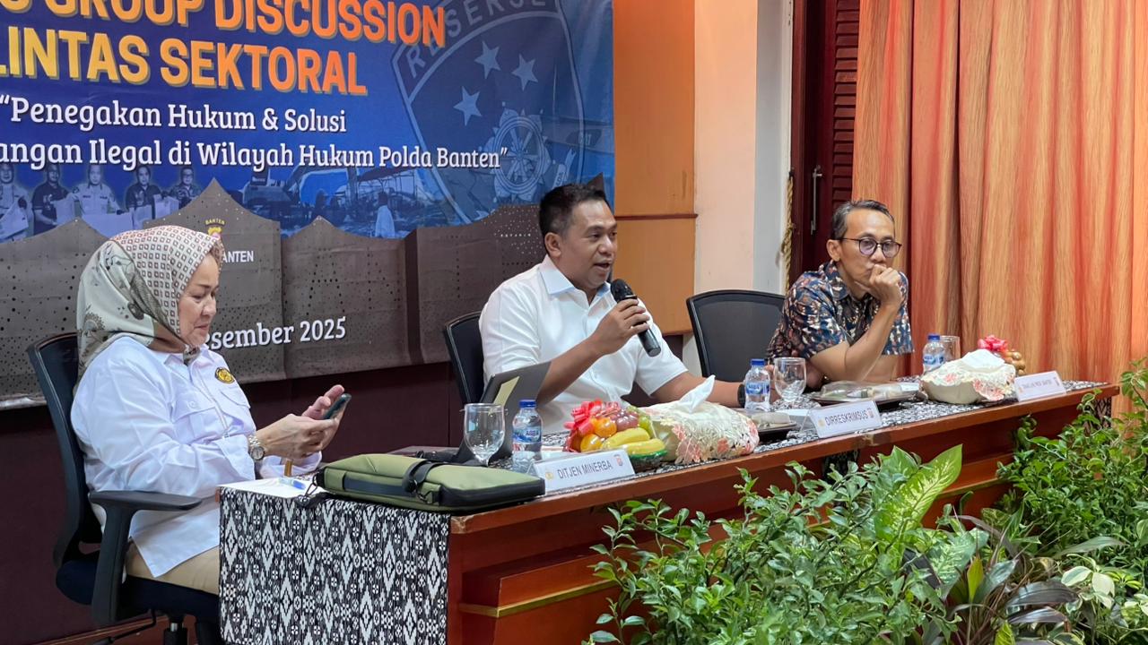 “Pertambangan ilegal masih menjadi tantangan serius di wilayah hukum Polda Banten. Melalui FGD ini, kita ingin menyamakan persepsi terkait regulasi, pengelolaan, hingga solusi konkret agar aktivitas pertambangan dapat berjalan sesuai ketentuan,” ujar Yudhis.