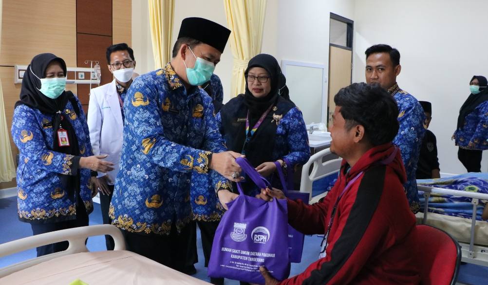 Tidak hanya melakukan monitoring, jajaran Pemkab Tangerang juga menyempatkan diri menyapa pasien serta memberikan bingkisan sebagai bentuk perhatian dan dukungan moril.