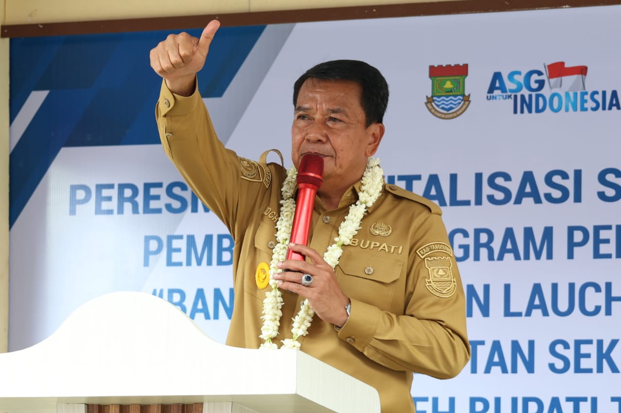 Dalam sambutannya, Bupati Tangerang mengungkapkan rasa syukur atas selesainya pembangunan ulang gedung sekolah yang sempat luluh lantak akibat bencana.