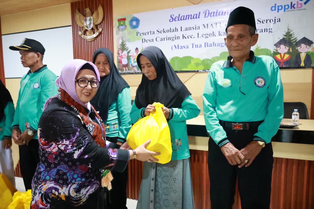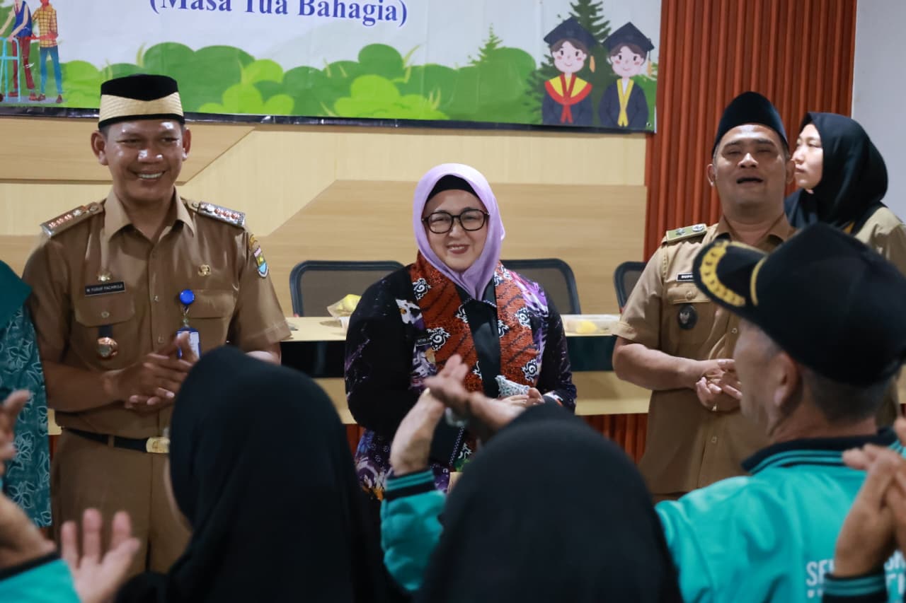 Wabup Intan turut memberikan semangat kepada para peserta didik angkatan kedua Sekolah Lansia Matuga agar terus bahagia dan berprestasi meski di usia lanjut.