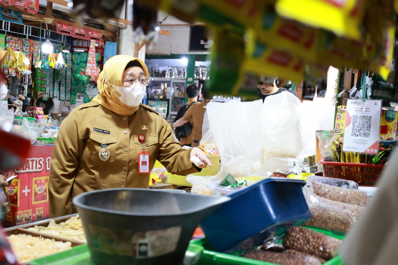 Didampingi Asisten Daerah II dan Kepala Dinas Perindustrian dan Perdagangan, Wabup Intan menyisir sejumlah lapak pedagang untuk memastikan stok pangan aman serta memantau potensi lonjakan harga menjelang Lebaran.