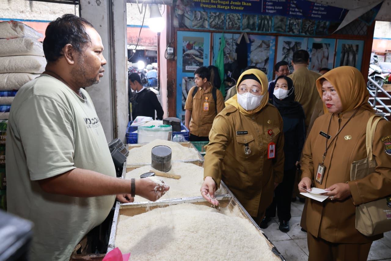 “Saya bersama Asisten 2 dan Kepala Dinas Perindustrian dan Perdagangan meninjau langsung Pasar Kelapa Dua untuk melihat ketersediaan dan harga kebutuhan pokok sebelum Idul Fitri,” ujar Intan.